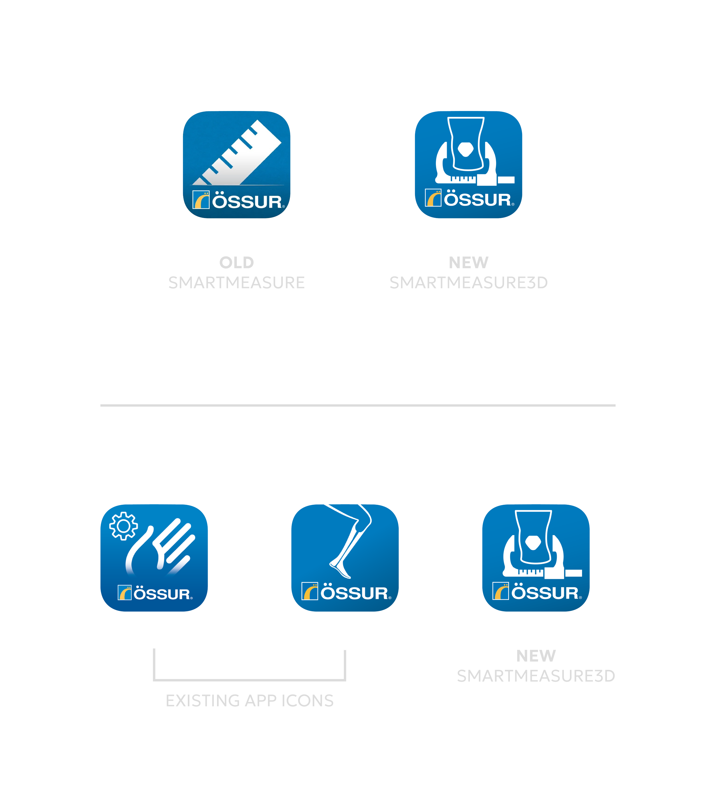 At Össur, I was tasked with creating the new icon for their SmartMeasure3D app — a digital measuring and ordering system for custom bracing. Maintained communication with stakeholders and incorporated their feedback. Went through several iterations before arriving at the final design.